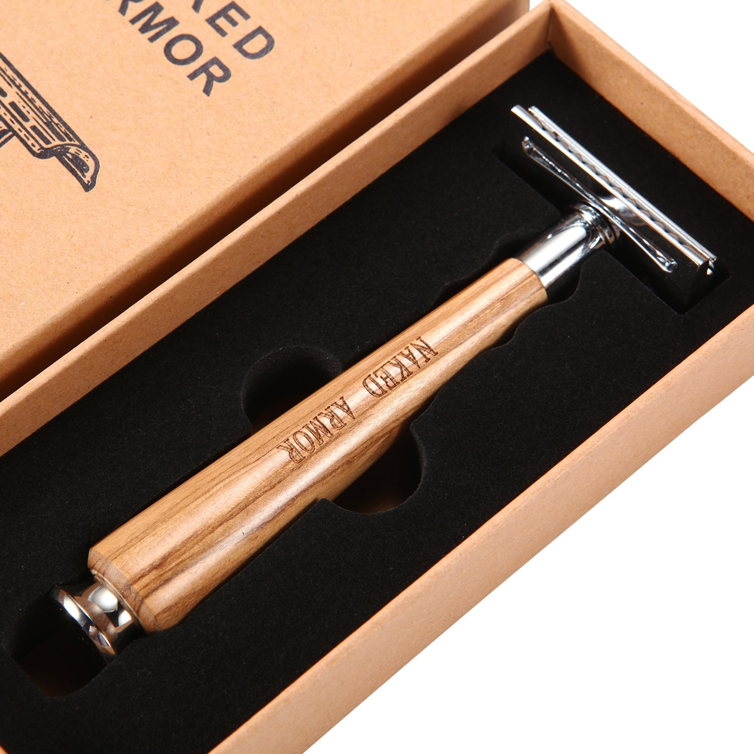 Naked Armor’s Gaswain Safety Razor features a closed-comb safety bar design providing a medium aggressive and non-irritating shave. It is ideal for daily shaving without the risk of razor burn, bumps, and ingrown hairs.