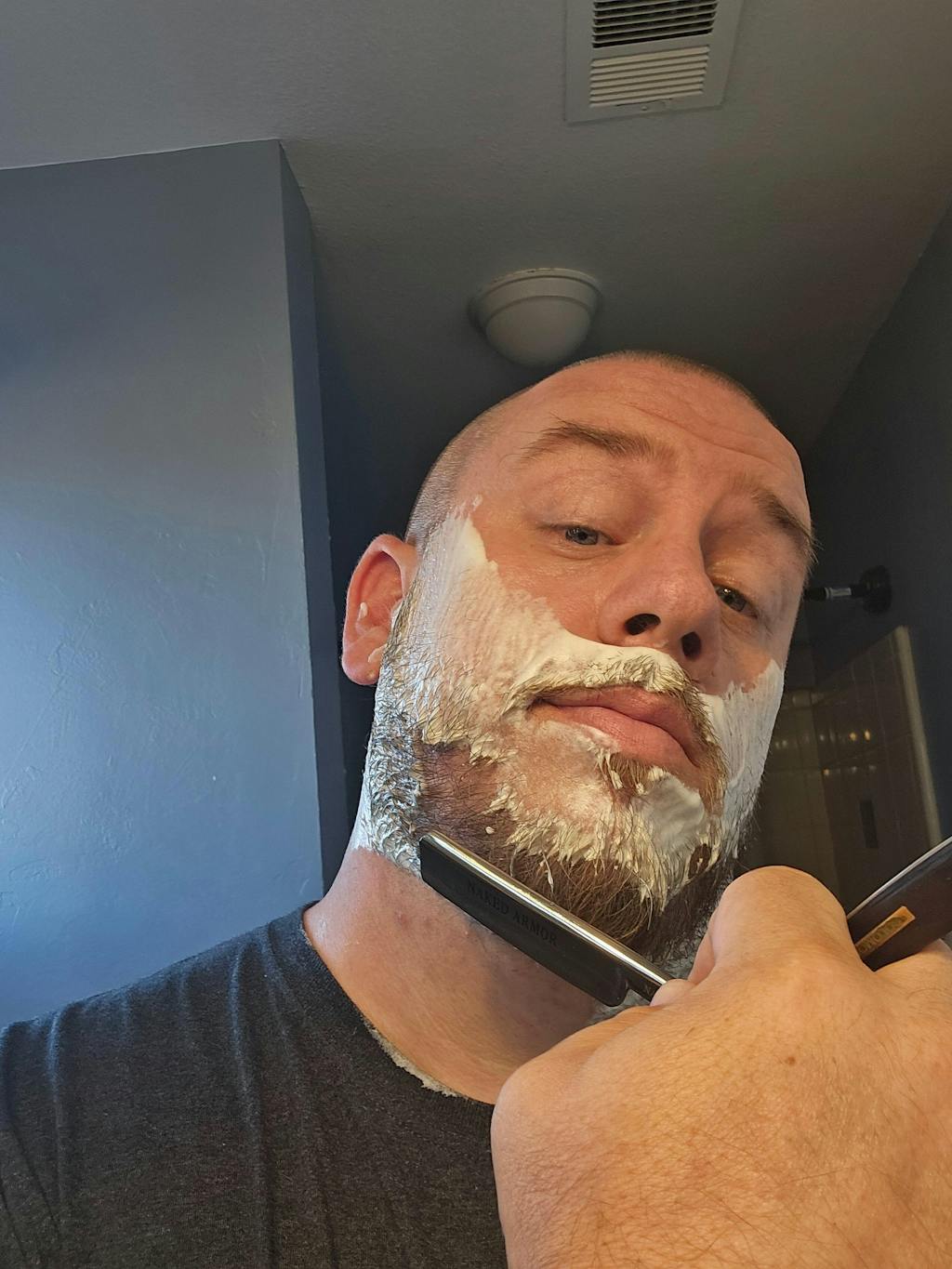- Add hot shaving foam to your face;