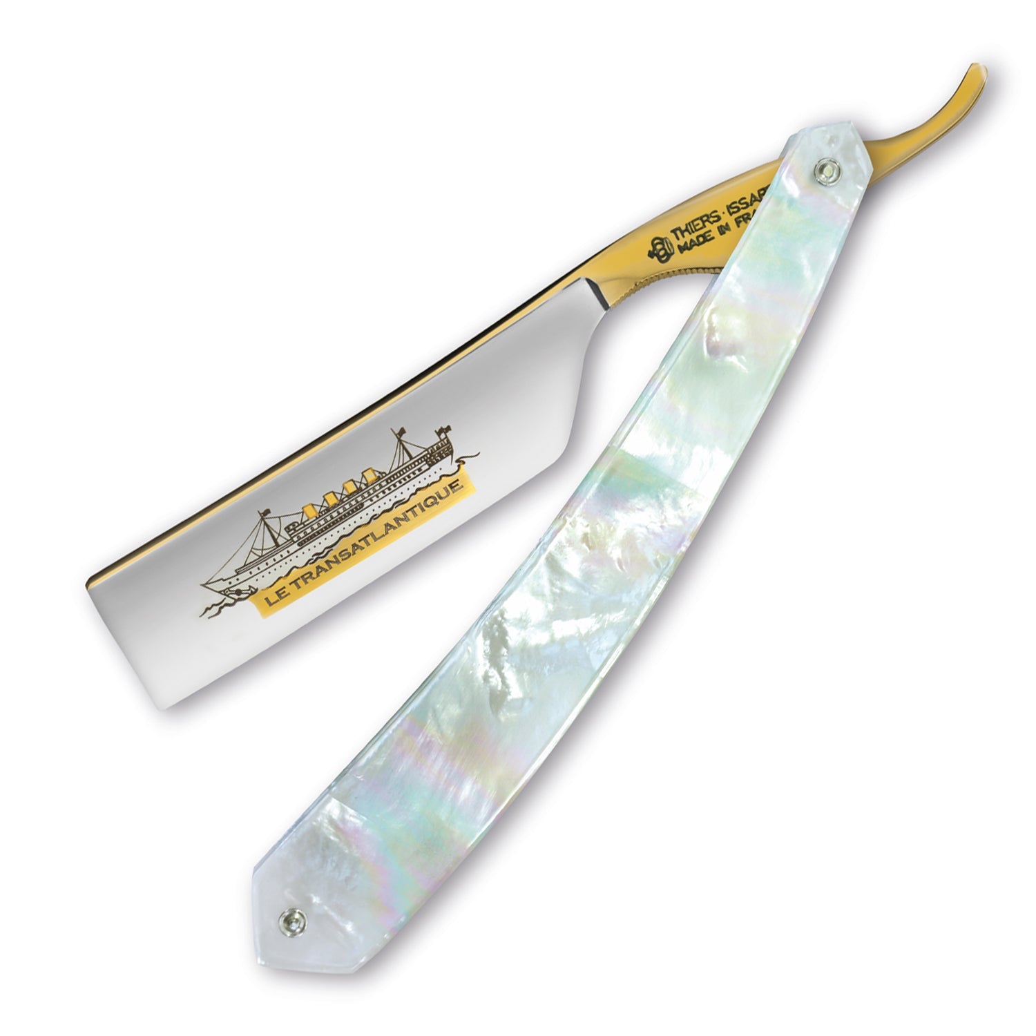 Thiers Issard 'Le Transatlantique' Straight Razor 7/8" 188 Mother of Pearl - Gold - Carbon Steel - Square Nose
