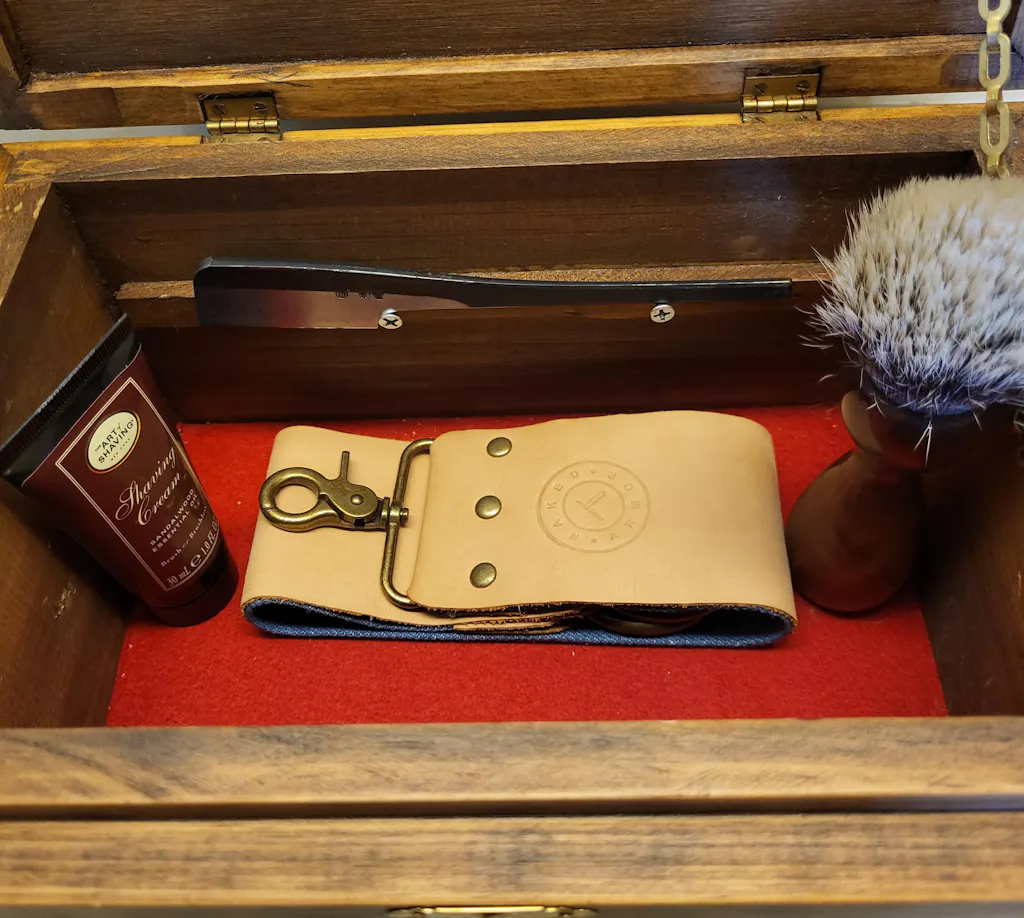 Good service. Very well honed. Short lead time. This sharp straight razor now allows me to easily follow my employers dress code.