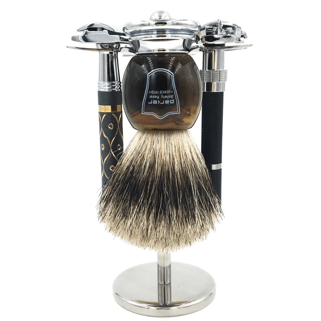 Super Safety Razors Stainless Steel 4-Prong Safety Razor and Shaving Brush Stand